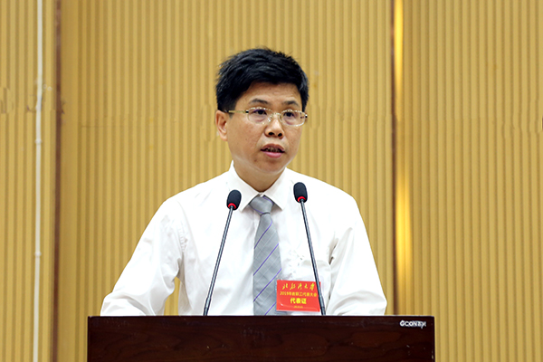 韩峻峰校长呼吁广大代表,不忘初心、牢记使命,攻坚克难、砥砺前行,为学校新发展新跨越开好局、起好步、奠好基,为把学校建成让党放心、人民满意、湾大人自豪的优势突出、海洋特色鲜明的高水平应用型大学而努力奋斗,为建设壮美广西、共圆复兴梦想贡献力量,以优异成绩庆祝中华人民共和国成立70周年!