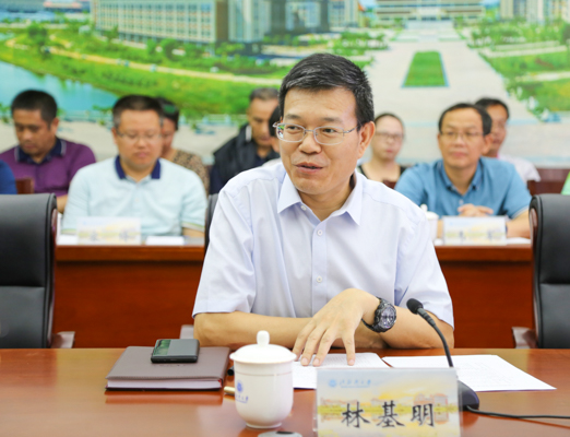林基明为张鹏一行介绍学校基本情况和办学经验。他表示,学校将通过坚持科学定位和特色发展、坚持重点突出和统筹协调、坚持目标导向和创新引领、坚持规划与举措有效衔接的基本原则,完成学校在“十四五”规划的发展目标,让学校建设海洋特色鲜明的高水平应用大学的基础更加坚实,使学校成为服务向海经济发展科技人才高地。