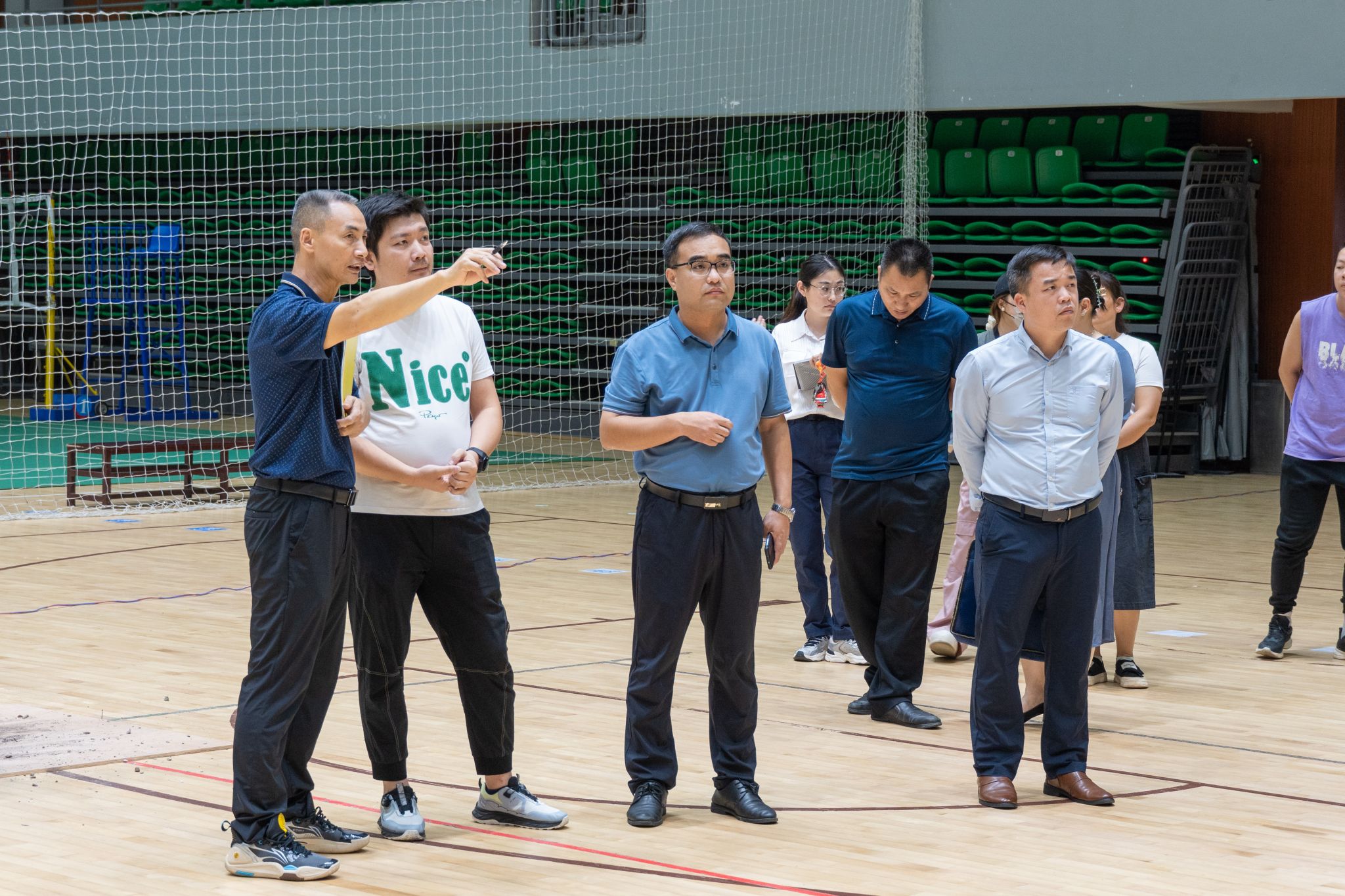 在体育馆内,马秀明重点察看了比赛运动场地、资源储备室、球员休息室、球员训练室等,对体育馆的场地建设、资源管理、后勤保障等提出了明确的要求。他强调,相关职能部门要切实加强后勤保障,尽快解决好比赛场地座位拆分、屏幕、音响、排水等基础设施建设问题,协调管理好比赛所需资源器材,扎实做好本职工作,努力提高后勤服务质量。