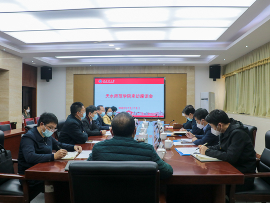 12月15日上午,天水师范学院党委书记李正元一行4人来校交流访问。双方在办公楼327会议室进行座谈交流。学校党委书记韩峻峰、学校副校长黄鹄出席座谈会。