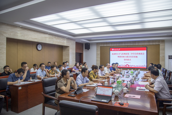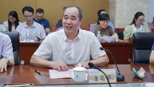 钦州市第二中学副校长李远国、梁文博、谭鸣、庄喜,党办主任黄武,学校研究生处、理学院、马克思主义学院、人文学院、教育学院、体育学院、国际教育与外国语学院、资源与环境学院、陶瓷与设计学院等单位相关负责人参会。(罗钧升 林滨鸿 摄)