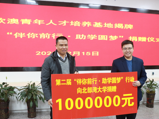 2月15日,钦澳青年人才培养基地揭牌暨第二届“伴你前行·助学圆梦”捐赠仪式在学校国际教育与外国语学院办公楼举行。钦州市委常委、统战部部长,副市长李开创,澳门广西社团联合总会会长、澳门广西钦州联谊会会长徐家颖女士,学校党委常委、副校长唐高华出席仪式并致辞。仪式由校党委常委、副校长陈磊主持。