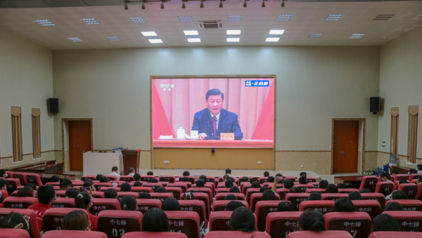 学校党委书记韩峻峰,党委副书记陈湘如,校党委常委、宣传部部长马秀明,武装部、学工部(研工部)、统战部、校团委主要负责人,二级学院党委副书记、团委书记,青年学生代表200余人在12号教学楼204报告厅收看庆祝大会直播。同时,广大师生在宿舍、教室通过电视、网络等渠道认真收看庆祝大会。