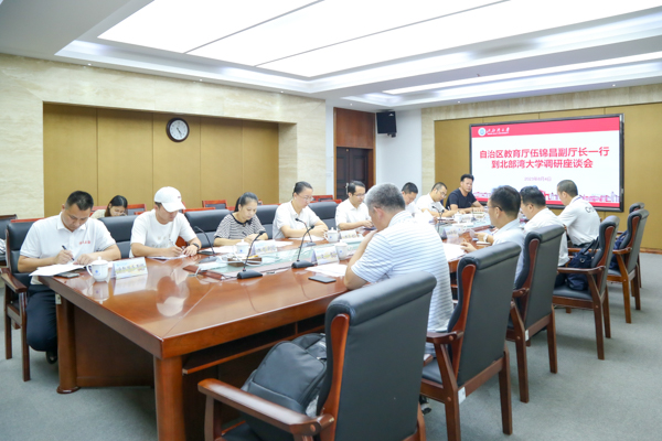 8月4日下午,自治区教育厅副厅长伍锦昌一行到校就学青会比赛场馆筹备及比赛器材购置工作进行专题调研,实地考察体育馆相关设施建设情况。副校长尹艳镇参加调研及座谈。
