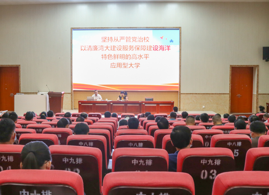 6月23日上午,校党委常委、纪委书记谢立平在12号教学楼204报告厅以“以清廉湾大建设服务保障建设海洋特色鲜明的高水平应用型大学”为题,为学校全体中层领导干部作专题培训。校党委常委、组织部部长陆衡主持。