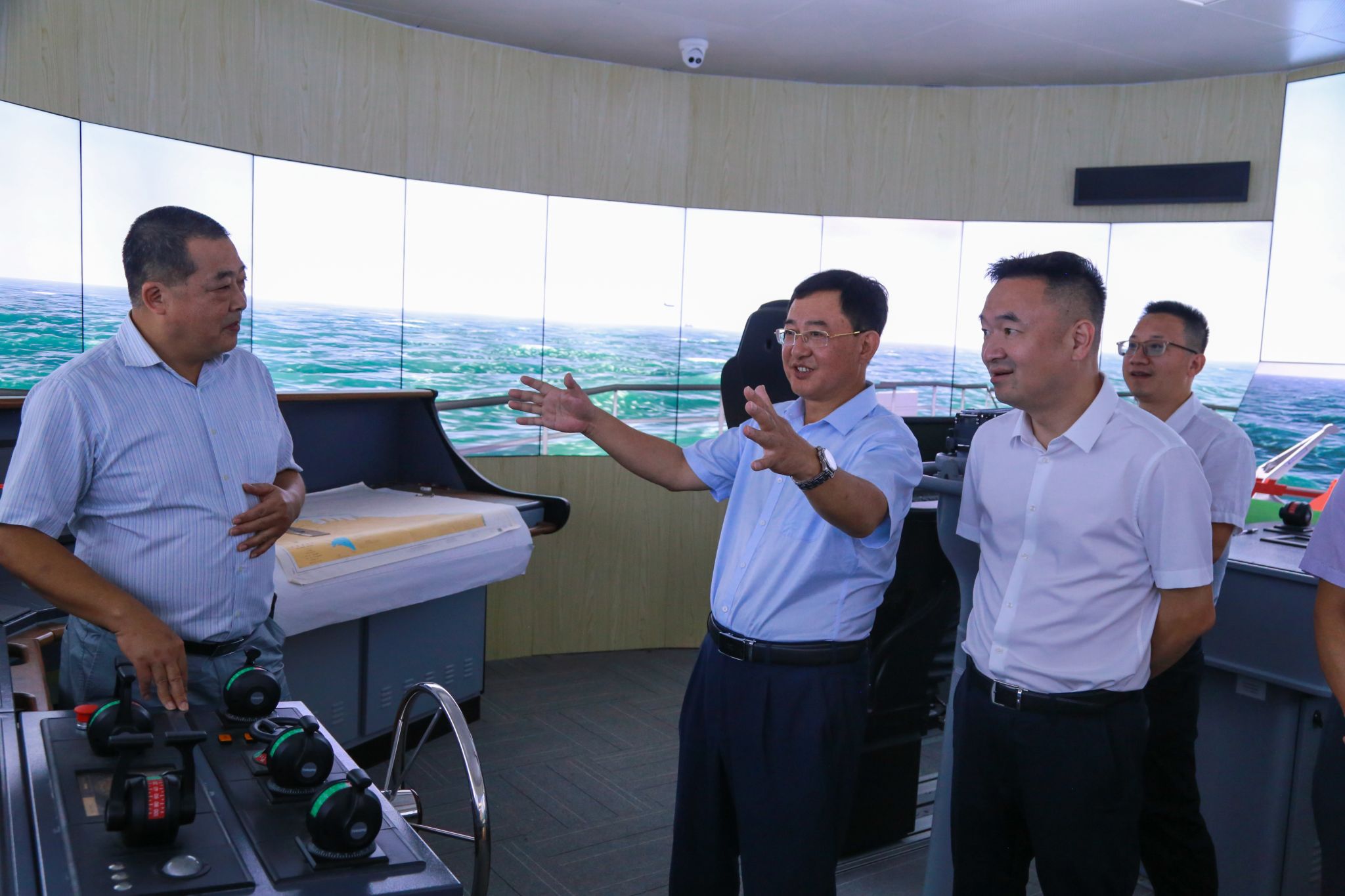袁国华副厅长(中)实地调研海运学院航海模拟实验室