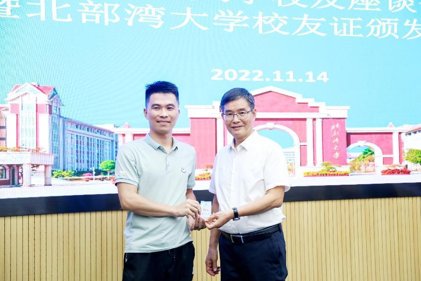 陈锦山为校友们颁发校友证