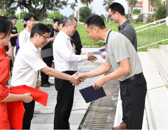 向行业企业专家周长元(右二)、周三平(右一)颁发兼职教师聘书