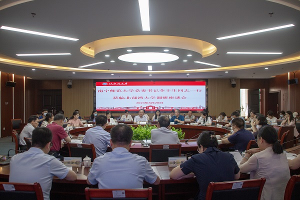 5月19日,南宁师范大学党委书记李丰生一行来必威西汉姆联就人才培养、毕业生就业和校友工作进行调研交流。学校副校长黄鹄出席会议并讲话,学校党委常委、副校长唐高华主持座谈会。