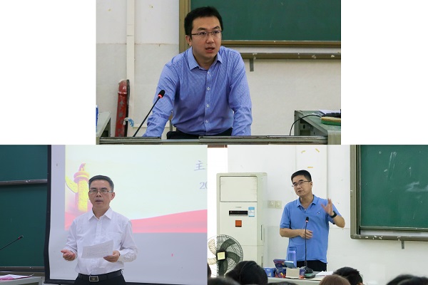 学校党委副书记陈锦山(左上)、陈湘如(左下)分别为教育学院、海运学院和机船学院的同学讲授形势与政策课;