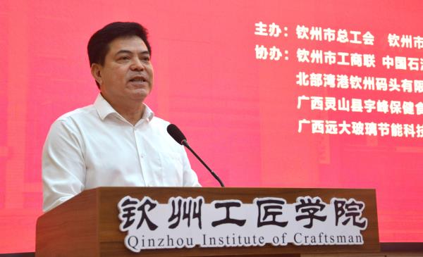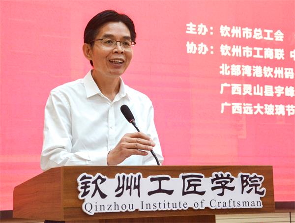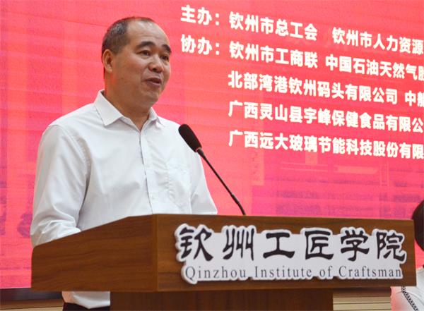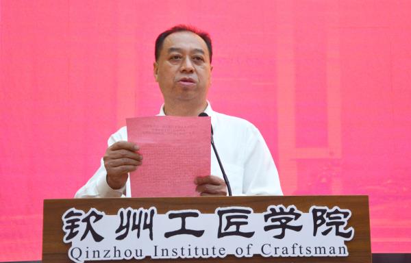 黄海华宣读了自治区人大常委会副主任、党组副书记、自治区总工会主席张晓钦关于“钦州工匠学院”挂牌成立的批示。