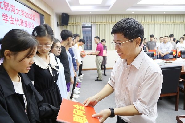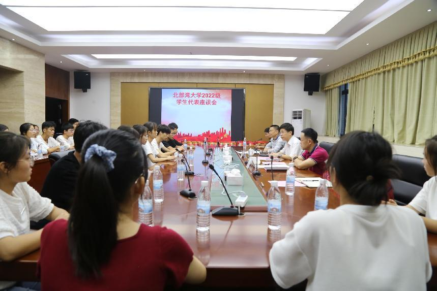 10月24日,学校在办公楼327会议室召开2022级学生代表座谈会。学校党委书记韩峻峰、党委副书记陈湘如与来自各二级学院的36名同学亲切交流,现场暖意浓浓。
