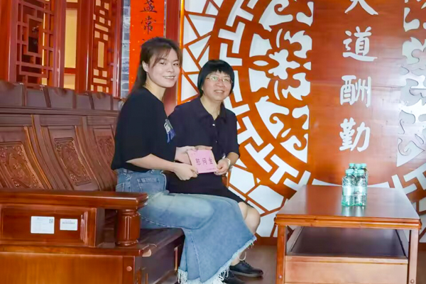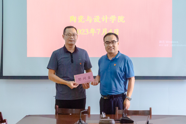 校党委常委、副校长马秀明(右)慰问陶设学院教师党员代表