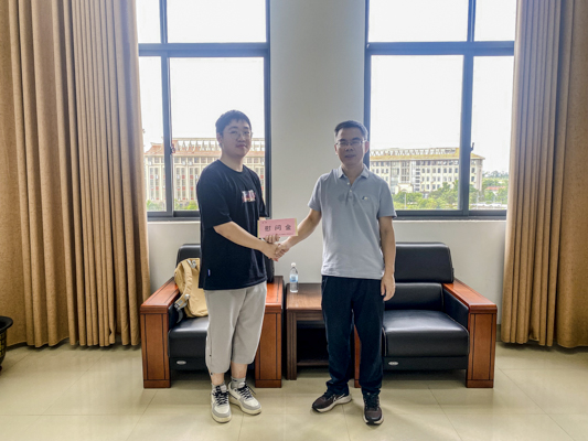 校党委常委、纪委书记谢立平(左)慰问资环学院学生党员代表