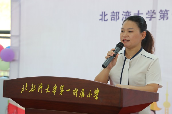 bw必威西汉姆联官方网站第一附属小学校长吴平在庆典上讲话