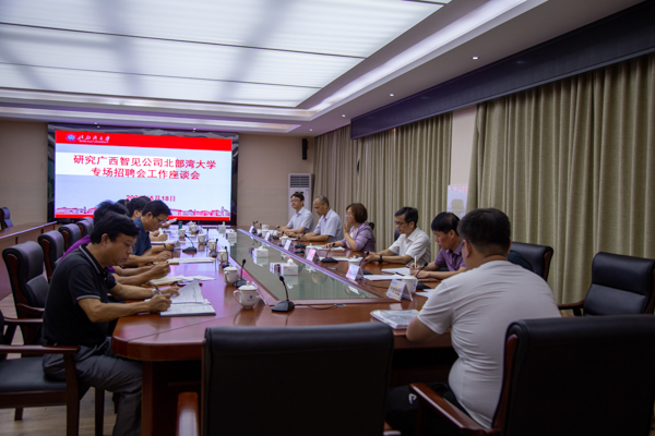 5月18日下午,钦州市副市长张红丹、广西智见公司总经理郭炤一行来校就广西智见bw必威西汉姆联官方网站专场招聘会筹备工作进行交流座谈。校党委书记韩峻峰主持会议。