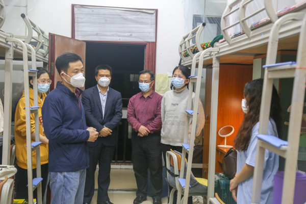 陈湘如一行先后来到人文学院中文本201班、陶设学院坭兴陶协会学生宿舍,实地查看了联系班级和社团学生的网课纪律、宿舍环境以及卫生情况,细致了解同学们的学习生活、思想动态和实际需求。