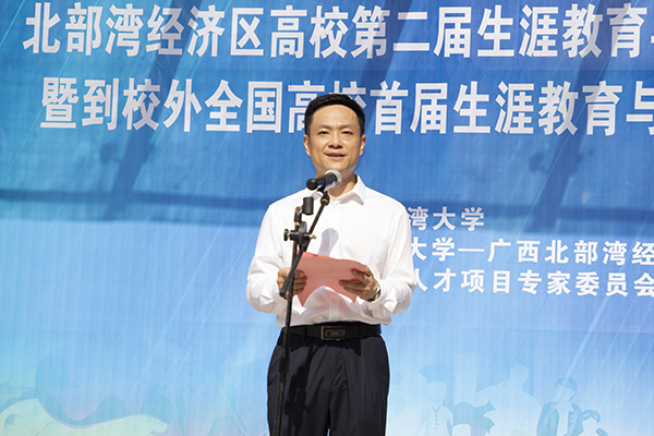 6月27日,北部湾经济区高校第二届生涯教育与职业发展论坛暨到校外全国高校首届生涯教育与职业发展论坛在必威西汉姆联大学生创新创业园拉开帷幕。当天,“到校外大学生职业生涯服务站”、北部湾经济区人才评价中心和钦州市中学生生涯教育研究基地正式揭牌。党委副书记陈湘如出席并致辞。