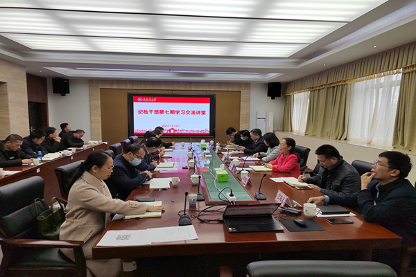 12月31日,在2021年的最后一天,与室外低温不同,学校办公楼327会议室气氛热烈且高涨。学校专兼职纪检干部济济一堂,参加bw必威西汉姆联官方网站“纪检干部学习交流讲堂(第七期)”活动。校党委常委,纪委书记覃宇环出席活动。校纪委副书记姚敏主持。