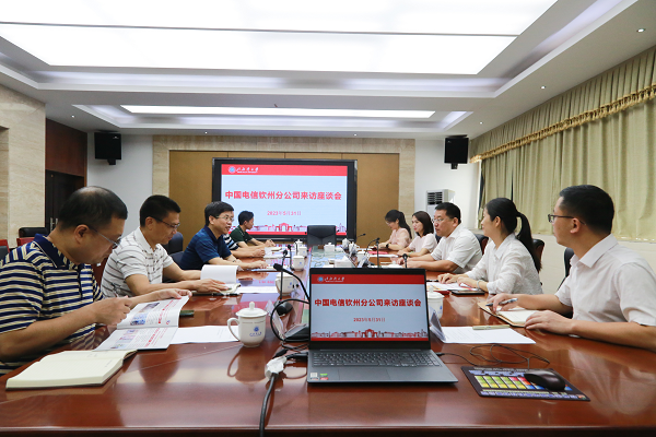 5月31日,中国电信钦州分公司党委书记、总经理罗东一行来校调研交流。学校党委书记韩峻峰出席座谈会。学校党办校办、学工处、招生就业处、网络与教育技术中心相关负责人参加会议。
