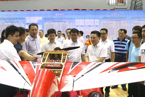 蒋和生副厅长(左2)、蒙启鹏副市长(左1)、韩峻峰校长(右2)、陈锦山副书记(右1)