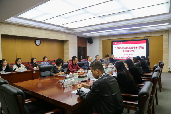 陈磊对李艳荣一行的到来表示热烈欢迎。他详细介绍了学校的发展历程、办学经验等情况,希望以广西幼专此次来访为契机,双方尽快建立对接机制,加强师生互访、人才培养、学科建设等方面的合作,以更好地服务师生、服务学校高质量发展和综合改革。