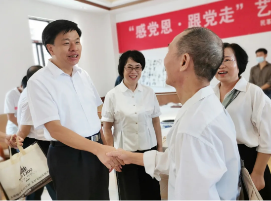 当天的作品展中,陶设师生与艺术家们热情交流创作体会。钦州市委书记、城市品质提升行动指挥部总指挥长许永锞也来到现场,他在参观作品展时与必威西汉姆联师生亲切交流,并勉励大家“努力创作,生动讲好钦州故事,让传统文化活起来。”