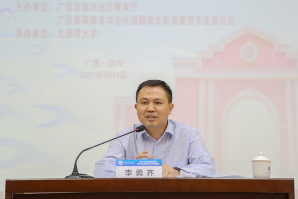 李勇齐对广西“十三五”教育对外开放工作作总结,分析了当前广西教育对外开放工作的形势,并对“十四五”教育对外开放工作进行部署。他指出,各高校要准确把握新形势新挑战,增强做好对外开放工作的责任感和紧迫感,聚集关键和重点,立足区位优势打造广西教育对外开放特色和品牌,努力开创高校对外开放工作的新局面。