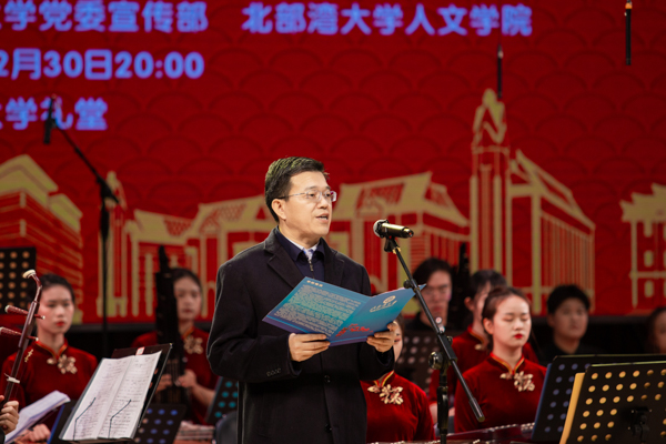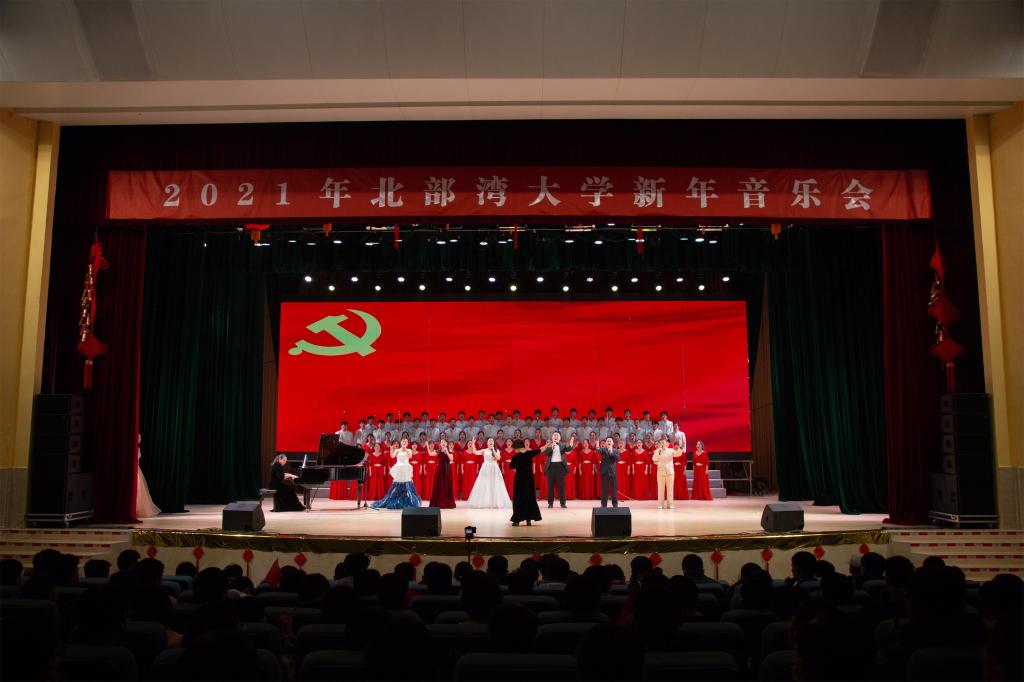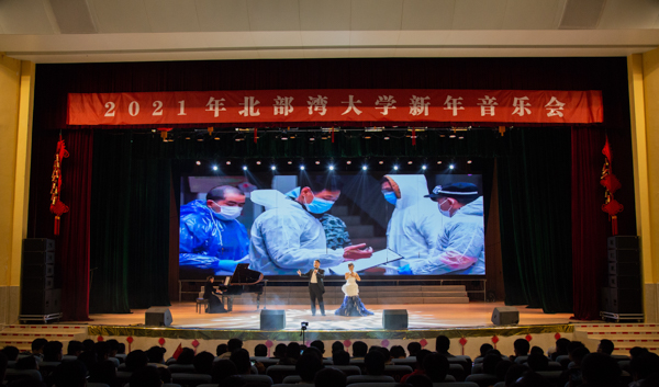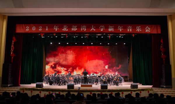 12月30日晚,必威西汉姆联“同赴百年约定 共圆复兴梦想”2021年新年音乐会在礼堂隆重举行。钦州市委常委、宣传部部长郑娟,学校党委书记韩峻峰,校长林基明,党委副书记陈锦山,副校长黄鹄、唐高华、陈磊,纪委书记覃宇环,湾大校友会副会长、广西华竹生物科技有限公司总经理黄本扬,各二级学院师生代表以及社会各界人士共同欣赏了音乐会。