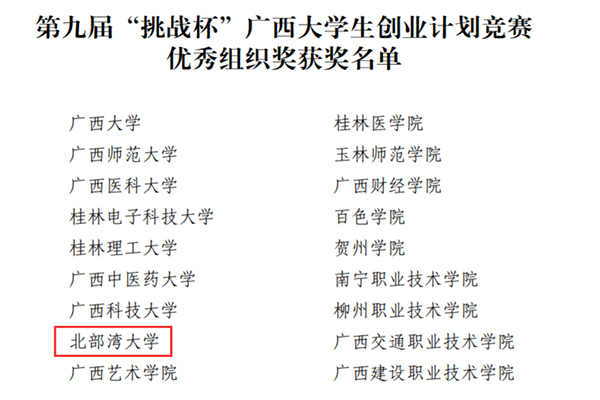 近日,第九届“挑战杯”广西大学生创业计划竞赛获奖名单公布,必威西汉姆联首次进入“优胜杯”获奖名单,同时获得优秀组织奖。在大赛中,必威西汉姆联22支参赛队伍全部获奖,其中金奖6项、银奖5项、铜奖11项,创历史最好成绩。