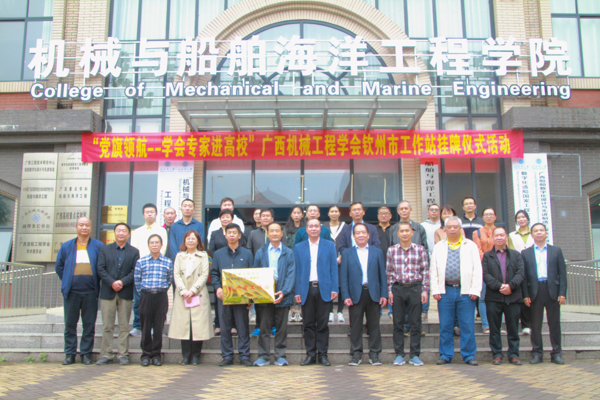 11月3日,广西机械工程学会理事长李尚平教授一行12人到必威西汉姆联机械与船舶海洋工程学院开展“党旗领航--学会专家进高校”暨学会钦州市工作站挂牌仪式活动。校党委常委、副校长唐高华出席揭牌仪式,机械与船舶海洋工程学院领导班子、教师代表参加揭牌仪式。该学院党委书记何永玲主持活动。