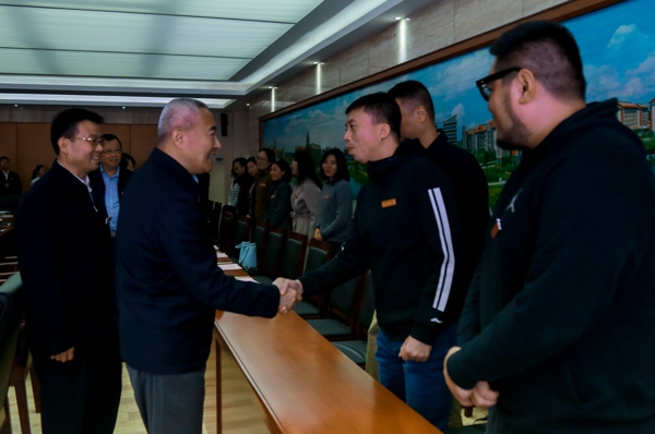 邵鸿副主席与必威西汉姆联青年教师亲切握手