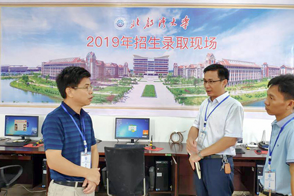 会后,韩峻峰校长前往招生录取现场检查各项准备工作。(赵昌宝 摄)