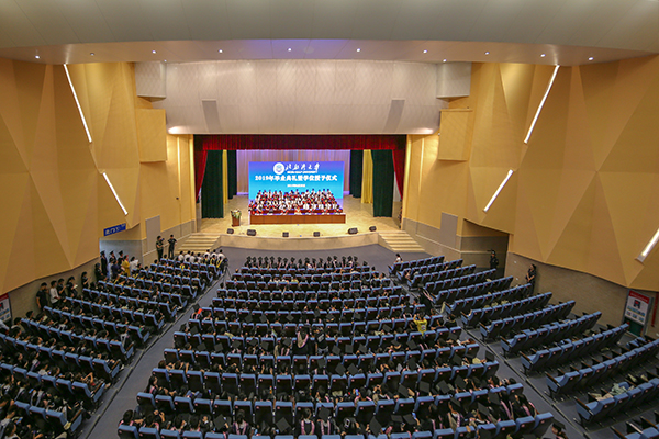 各职能部门、各教学单位负责人、全体毕业生班主任、辅导员、教职工代表参加毕业典礼。(胡晓冰 农世龙 俞用庆 摄)