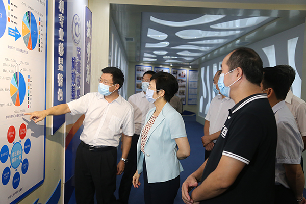 杨静华副主任(左二)在赵君书记(左一)、唐高华副校长(右一)的陪同下参观办学成果展