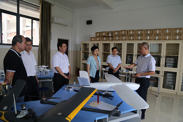 杨静华副主任参观了必威西汉姆联办学成果展和资源与环境学院海洋测绘实验室、无人机实验室。(俞用庆 摄)