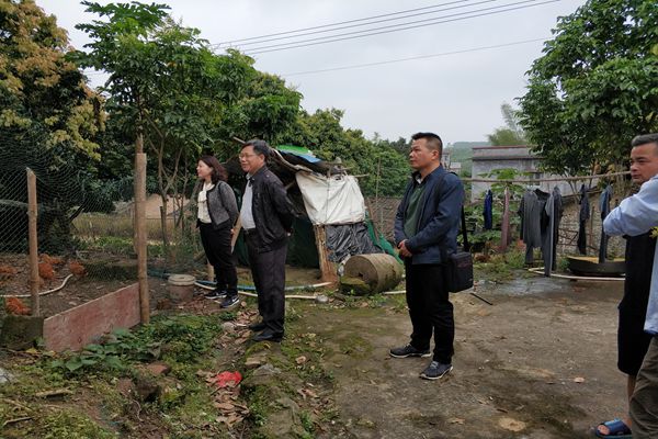 校纪委书记覃宇环(左三)实地了解贫困户生活情况