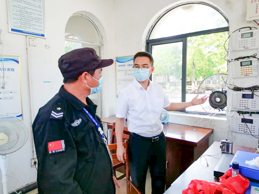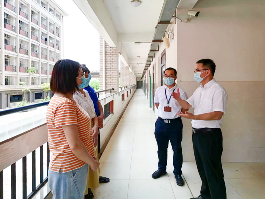 8月1日上午,校党委常委、纪委书记谢立平率队到学校南门、东门、警务室、视频监控室、食堂、学生公寓等场所走访检查暑期校园值班值守和疫情防控工作情况。