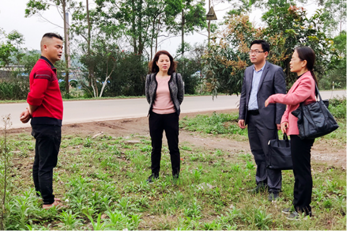 覃宇环纪委书记(左二)在青龙村现场调研