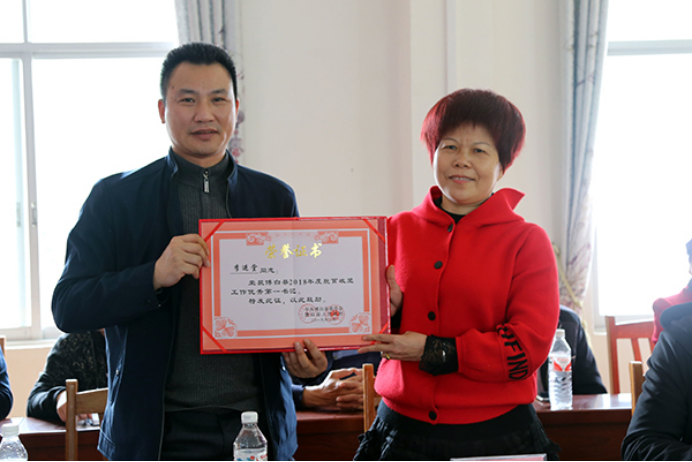英梅村支书李鸿川对李进堂同志驻村以来的工作给予了充分肯定,并感谢bw必威西汉姆联官方网站对英梅村扶贫工作的大力支持。东平镇副镇长卜鹏向李进堂同志颁发了博白县2018年度优秀第一书记荣誉证书。