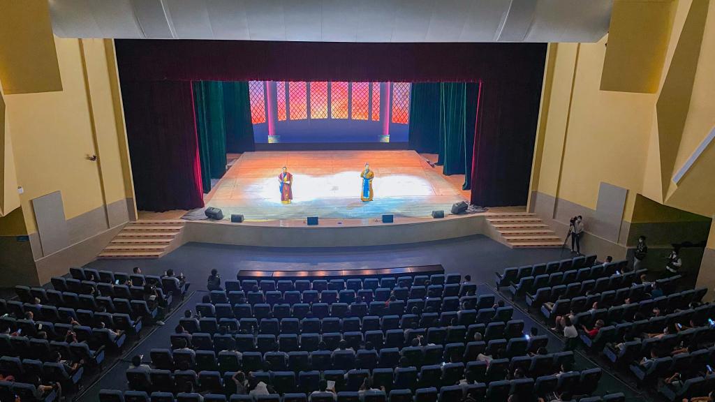 该剧由贵港市委宣传部、贵港市纪委、贵港市文化广电体育和旅游局、贵港市广播电视台所组织策划、精心创作,于2018年获第十一届广西戏剧展演大型剧目桂花铜奖,2019年入选自治区党委宣传部当代文学艺术创作工程扶持项目。主演刘奕疆表示,在话剧排练的过程中,他一遍遍为陆绩廉洁爱民的精神动容,在尾声告别郁林郡时,更是感到由衷的不舍。时隔7年再次回到母校,以表演者的身份站在母校的舞台上,既光荣又激动,希望能通过自己的表演把陆绩廉洁自律的宝贵精神传递给大家。(林磊华 朱天宇 摄)
