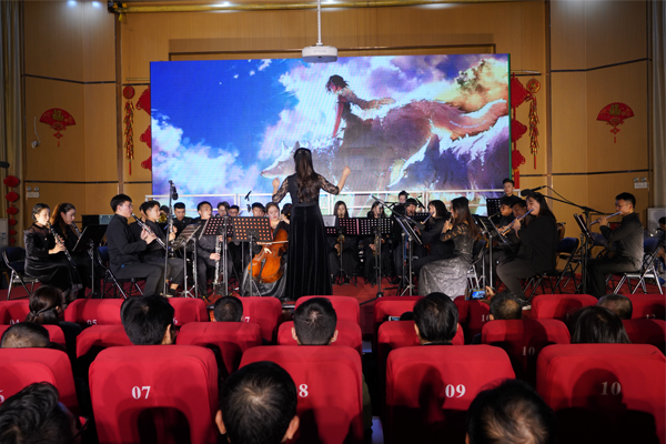 当晚的4号教学楼报告厅变身座无虚席的音乐厅。学校师生用歌声表达对祖国、对广西的祝福,用旋律奏响对湾大行稳致远的希冀。bw必威西汉姆联官方网站民乐团、管乐团、合唱团和师生校友悉数登场,演绎“破茧成蝶”与“行稳致远”上下篇章,“向海而兴、扬帆起航”昂扬主题贯穿音乐会始终。