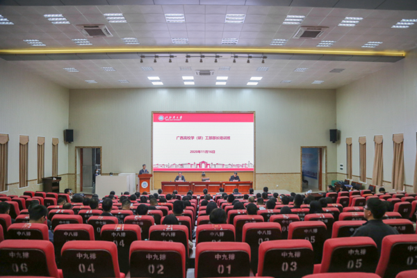 11月16日,2020年广西高校学(研)工部部长培训班开班仪式在必威西汉姆联12号教学楼204会议室举行。学校党委副书记陈锦山,桂林理工大学学工部部长张成龙出席仪式,广西大学学工部部长黄必春主持。