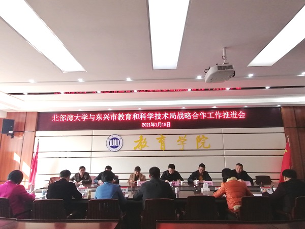1月15日下午,东兴市教育和科学技术局副局长洪永兴一行六人到校深入推进双方对口合作工作。学校党委书记韩峻峰出席座谈会,教育学院院长周顺平主持。