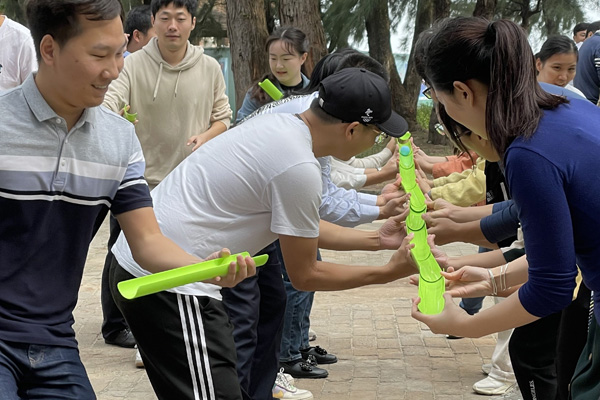 心理素质拓展活动是此次现场教育活动的压轴,参训人员分为4组进行数字漫游、珠行万里、搭桥过河三个项目的比拼,大家群策群力,团结协作,你追我赶,加油声此起彼伏,气氛热烈。