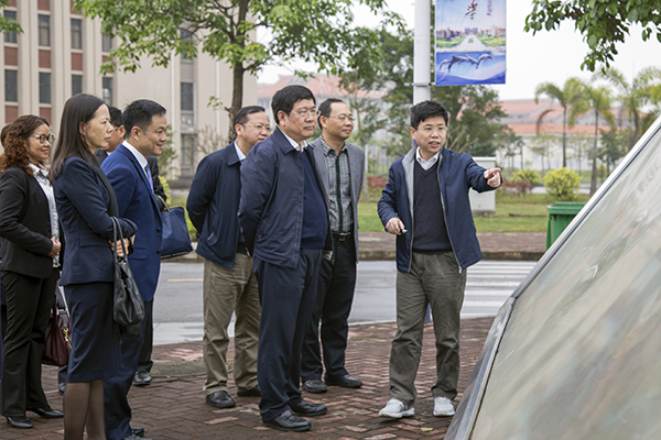 会前,赵校长一行参观了校园,韩峻峰校长、陈湘如副书记、黄鹄副校长陪同参观。