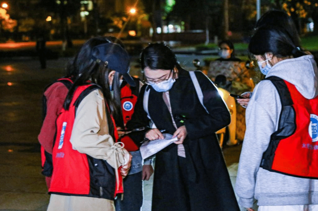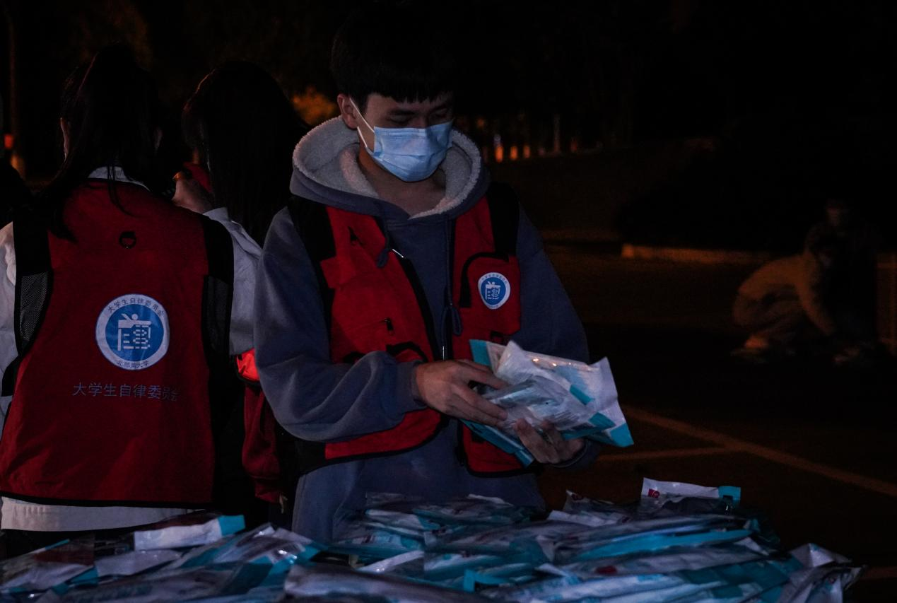 学生志愿者帮助核点分发口罩