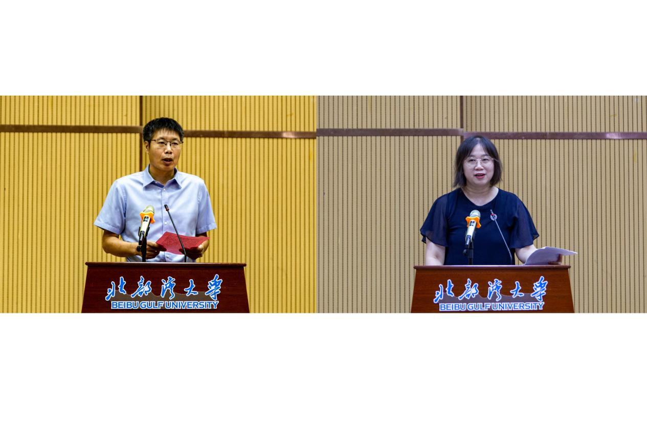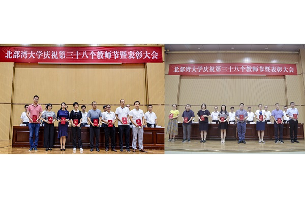 学校师资队伍建设先进单位石化学院、经管学院分享了师资队伍建设经验;机船学院教授蒙占彬、人文学院副教授何晨作为自治区优秀教师、学校优秀教师代表分别上台发言;来自教育学院的梁丽红同学则代表全体湾大学子向全校教师表达了感恩和祝福。(廖泽湖 周晟旻摄)