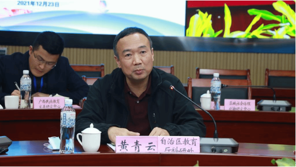 12月23日下午,由自治区教育厅主办,广西人文社会科学发展研究中心,学校北部湾海洋发展研究中心、经济管理学院、陆海新通道北部湾研究院、北部湾海洋经济研究院共同承办的2021年广西高校人文社科重点研究基地建设总结会主题交流讨论会在学校6号教学楼222会议室召开。自治区教育厅科研处处长黄青云,学校党委副书记陈锦山,副校长、北部湾海洋发展研究中心主任黄鹄出席会议。来自广西各高校人文社会科学重点研究基地的主要负责人、专家学者等近40余人参加会议。