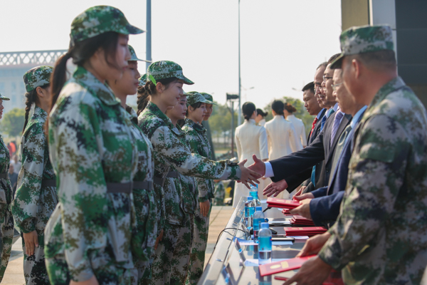 学校有关职能部门领导、各二级学院领导、广西绿邦国防教育训练基地有关领导嘉宾、军训的全体教官和2021级新生辅导员和班主任参加大会。(罗溢 黎小倩 陆瑶 廖泽湖 余秋子 梁昱昊 李树艳 陈杏 林磊华 周小莲 彭阳阳 摄)